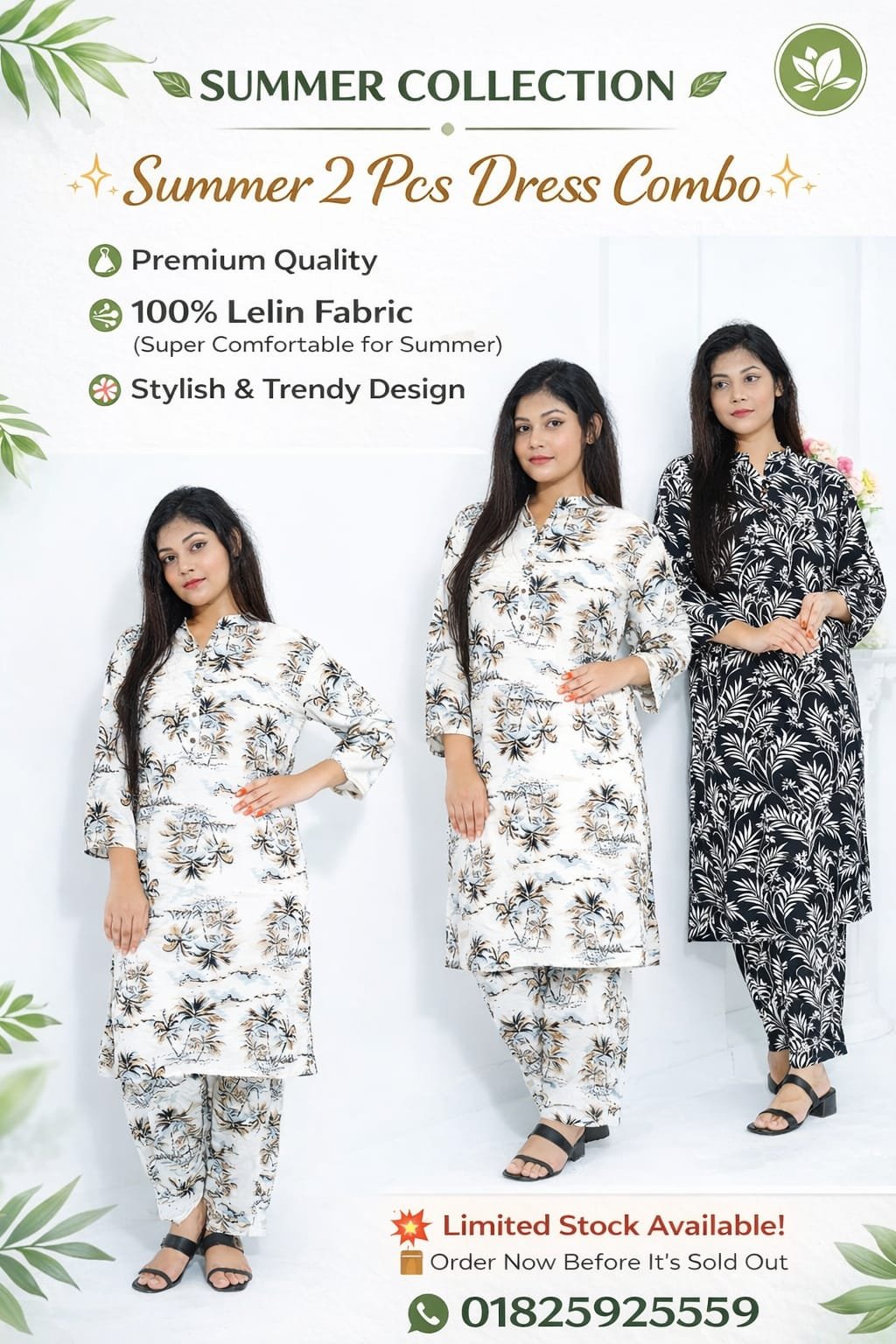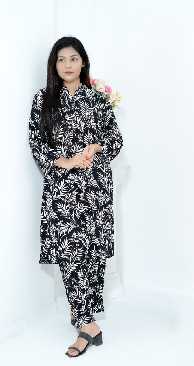 ২ পিছ ড্রেস কম্বো সেট Beige palm & Black leef Color